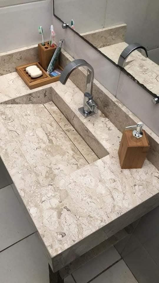 Cozinhas e Banheiros: Fabricação de Pias de Mármore e bancadas em granito, lavatórios e nichos para cozinhas planejadas e áreas gourmet.